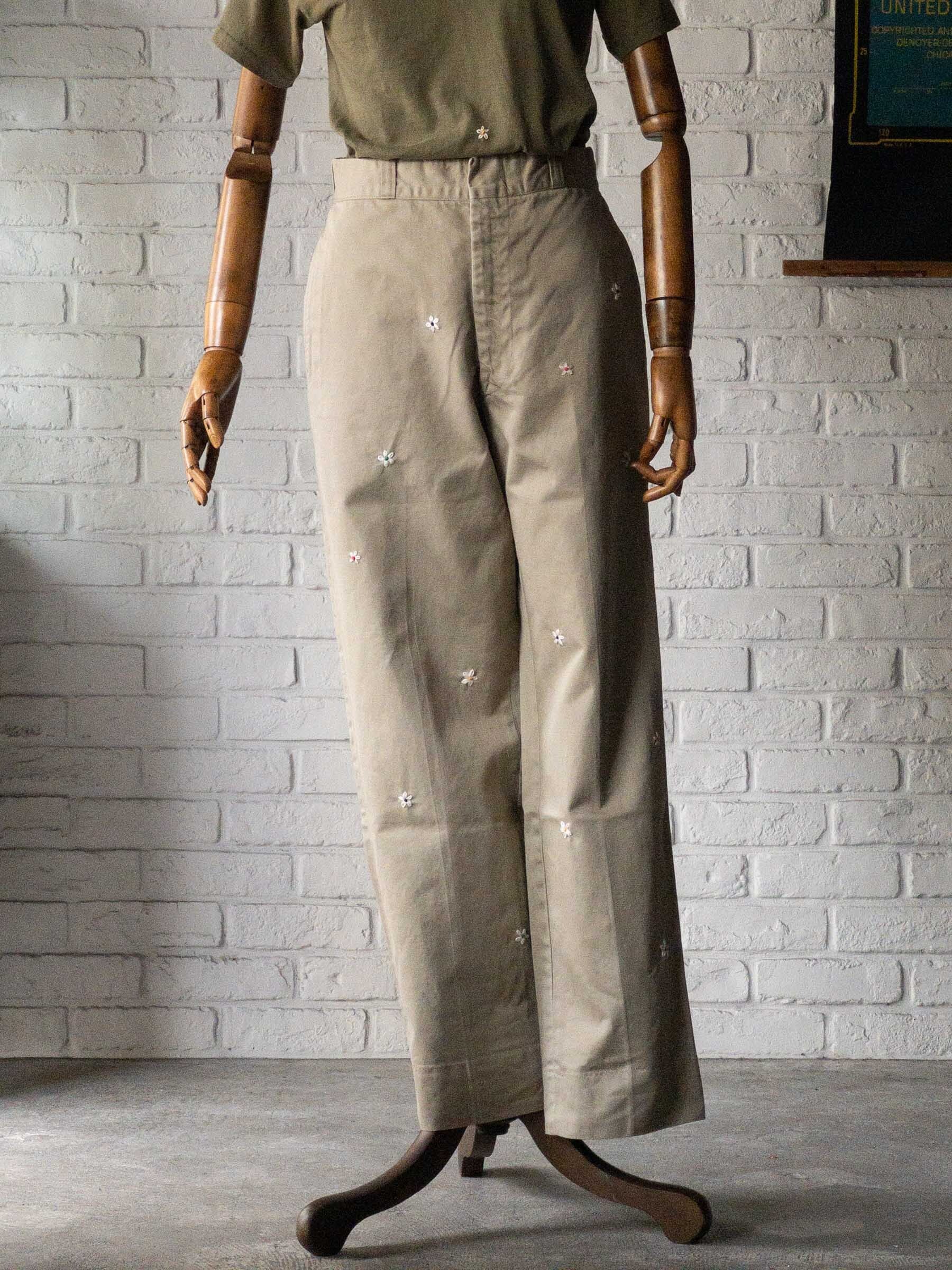 50年代のUS ARMY のチノパンにひとつひとつ小花の手刺繍が散りばめられています。