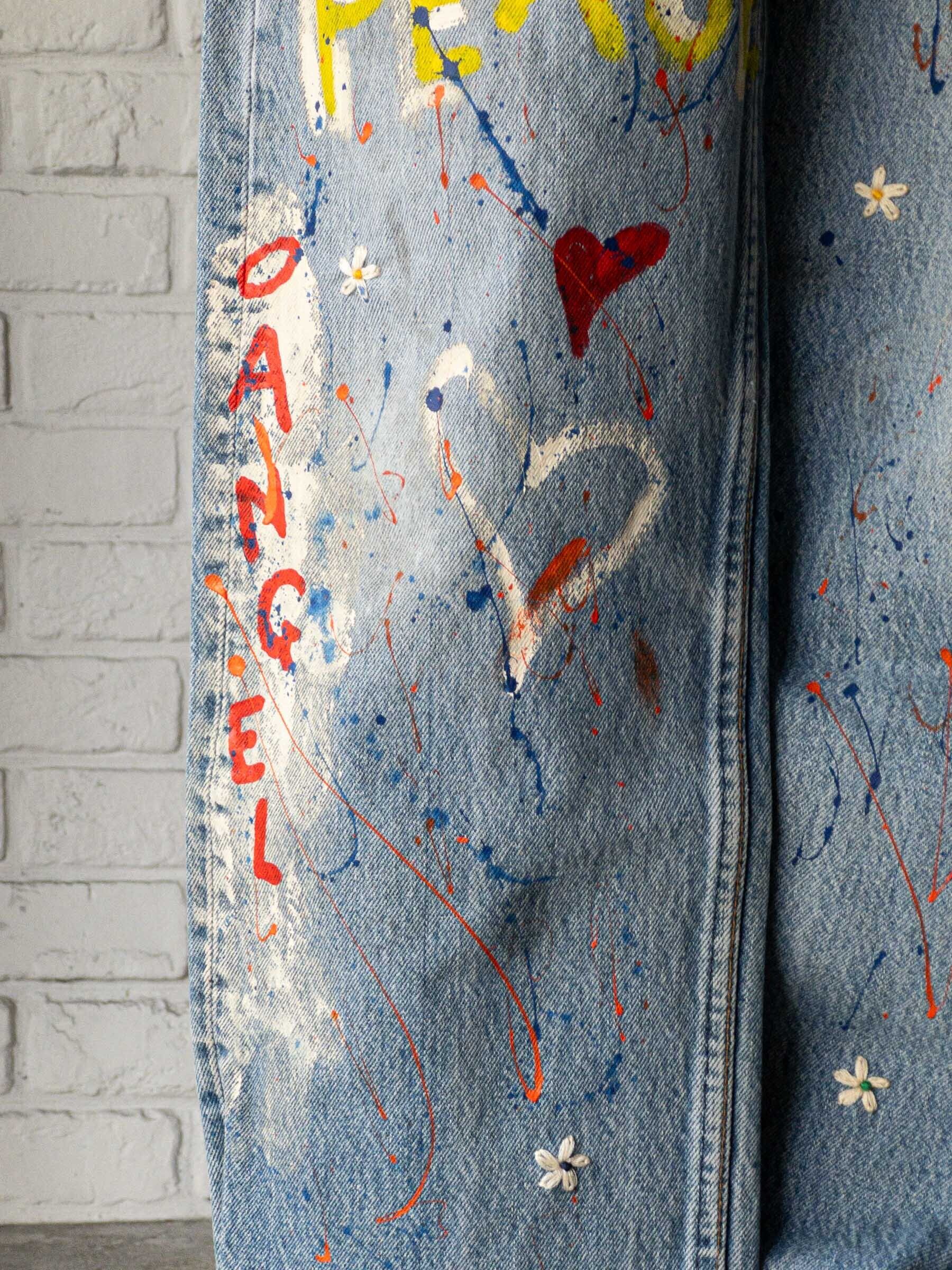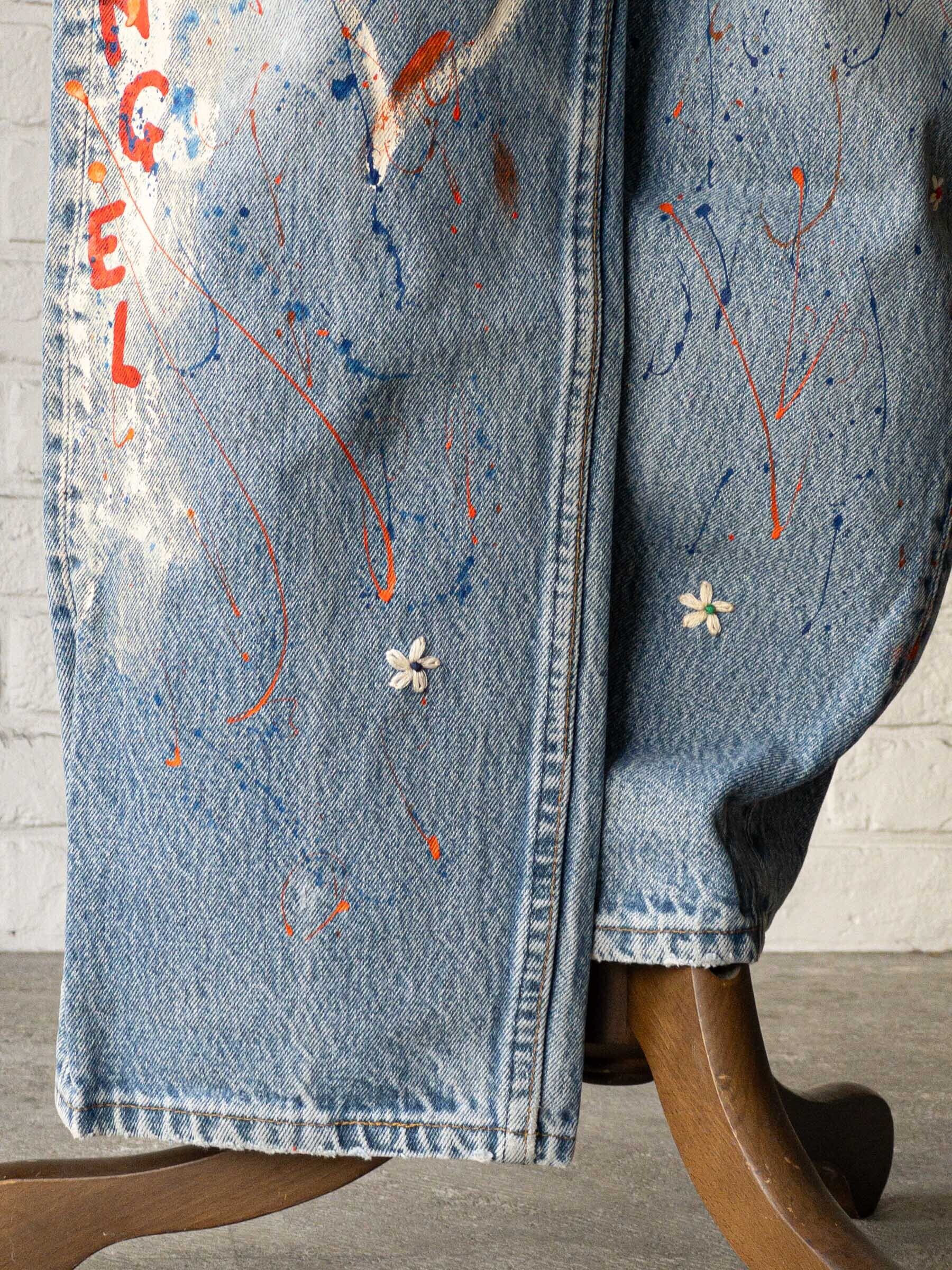 ”SHANANA MIL” DAISYⓇ EMBROYDERY & HAND PAINTED VINTAGE LEVI'S 501