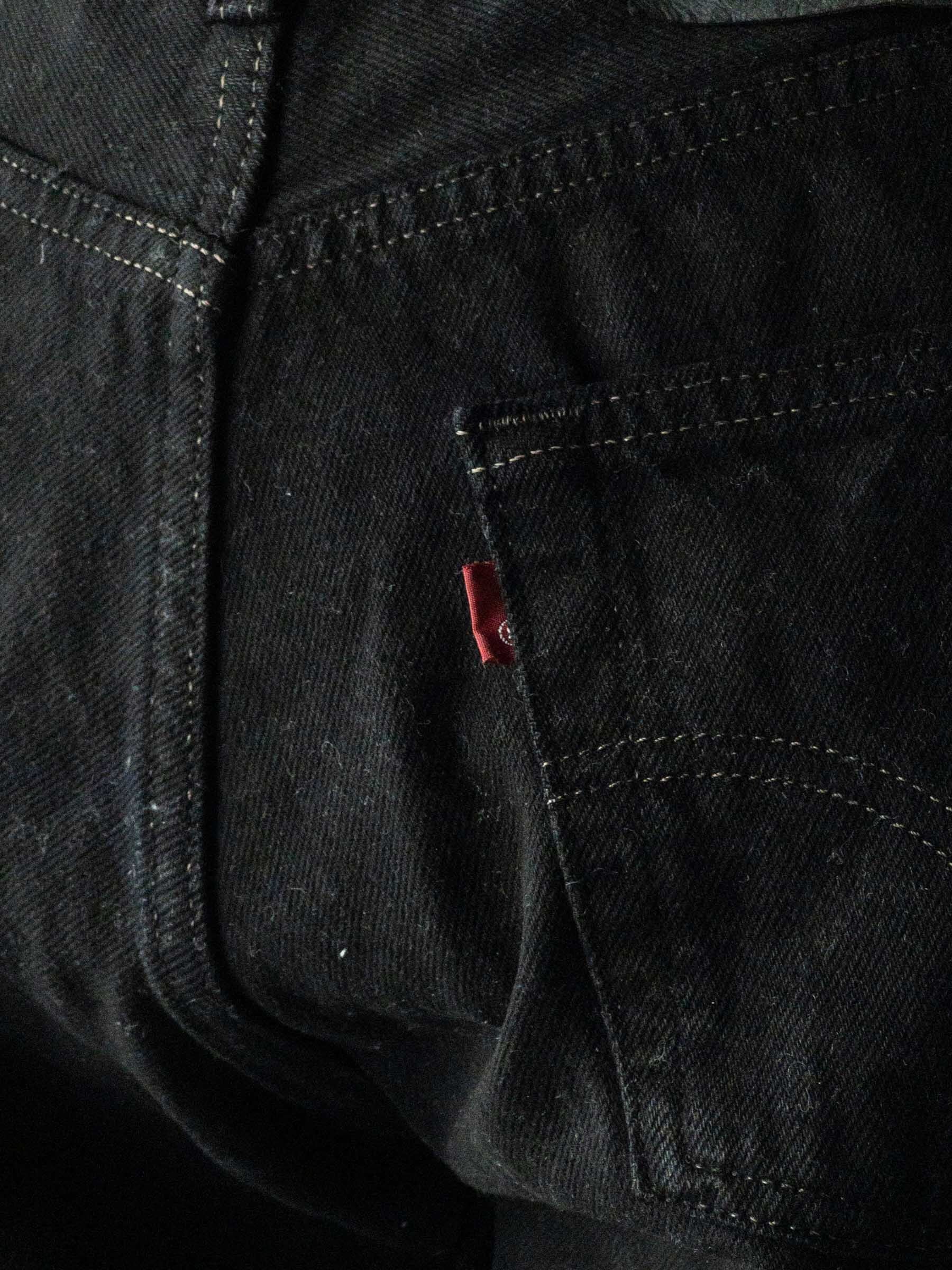 パッチまでがっつりとブラックに染まっています。LEVI'Sの赤いタブが黒に映える1本。