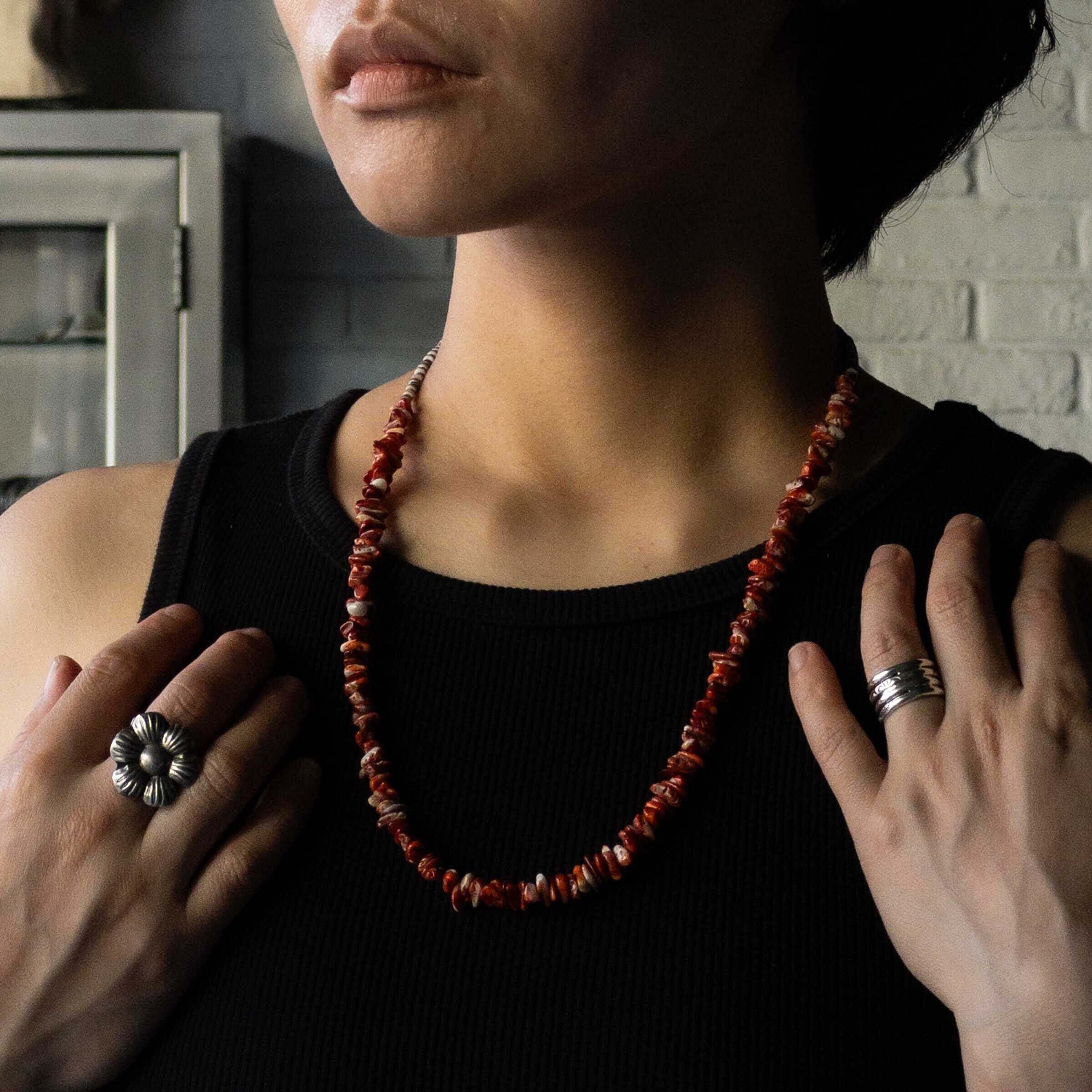 夏らしい、インディアンジュエリーらしい珊瑚(コーラル)のネックレス。