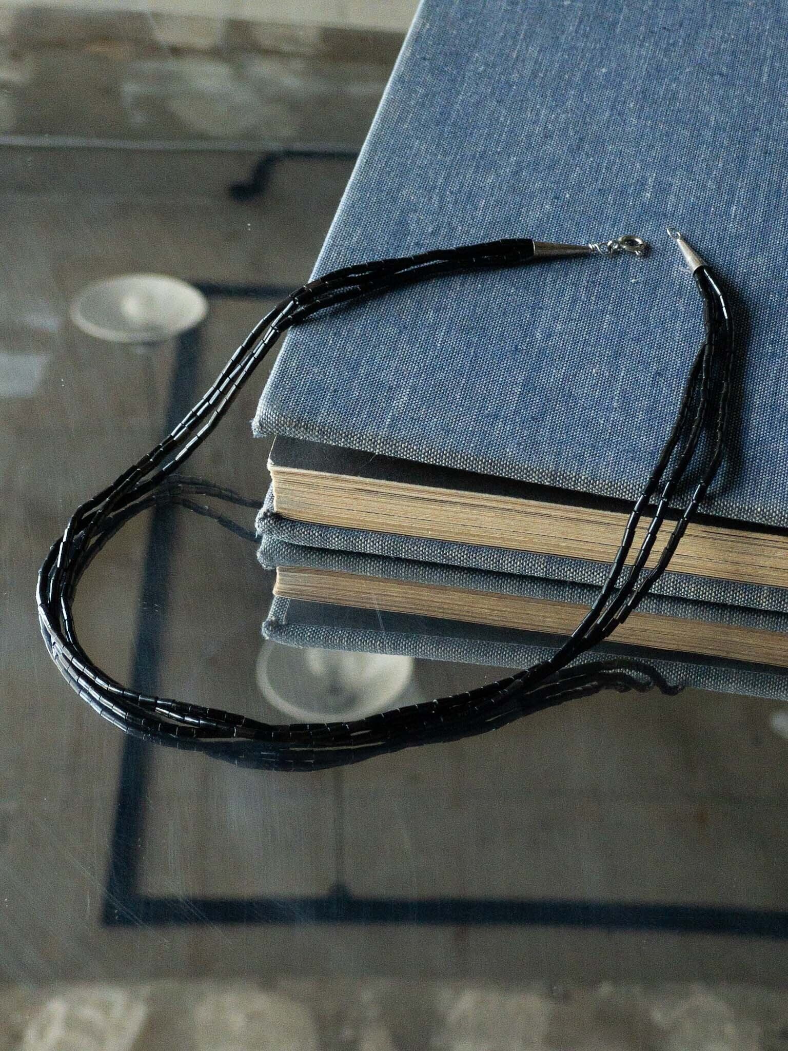 Navajo 3-stand Liquid beads Necklace black