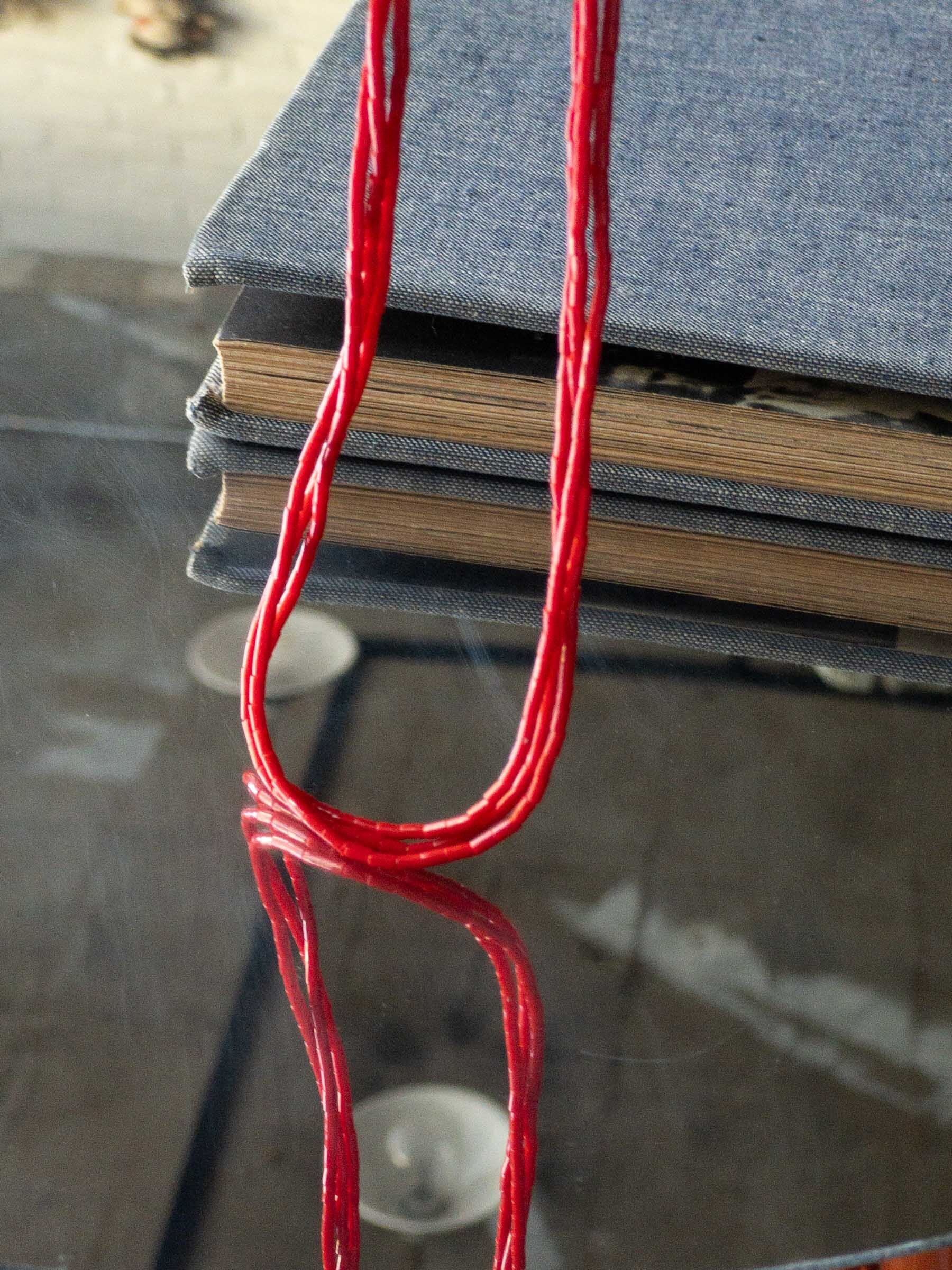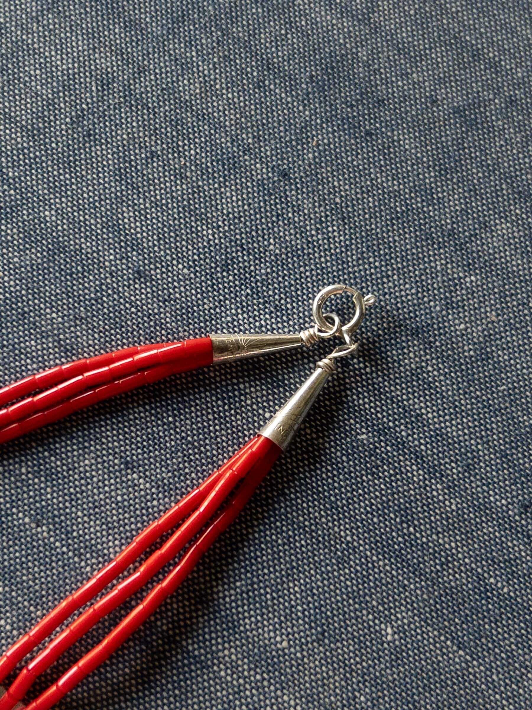 ナバホのビーズワークによる、軽快な3連のネックレス。