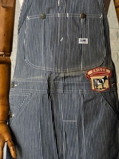 1950年後半のLeeのデッドストック・ヒッコリーストライプのオーバーオールです。タグにMR.Rマークが無い事から古いタイプのモノと思われます。