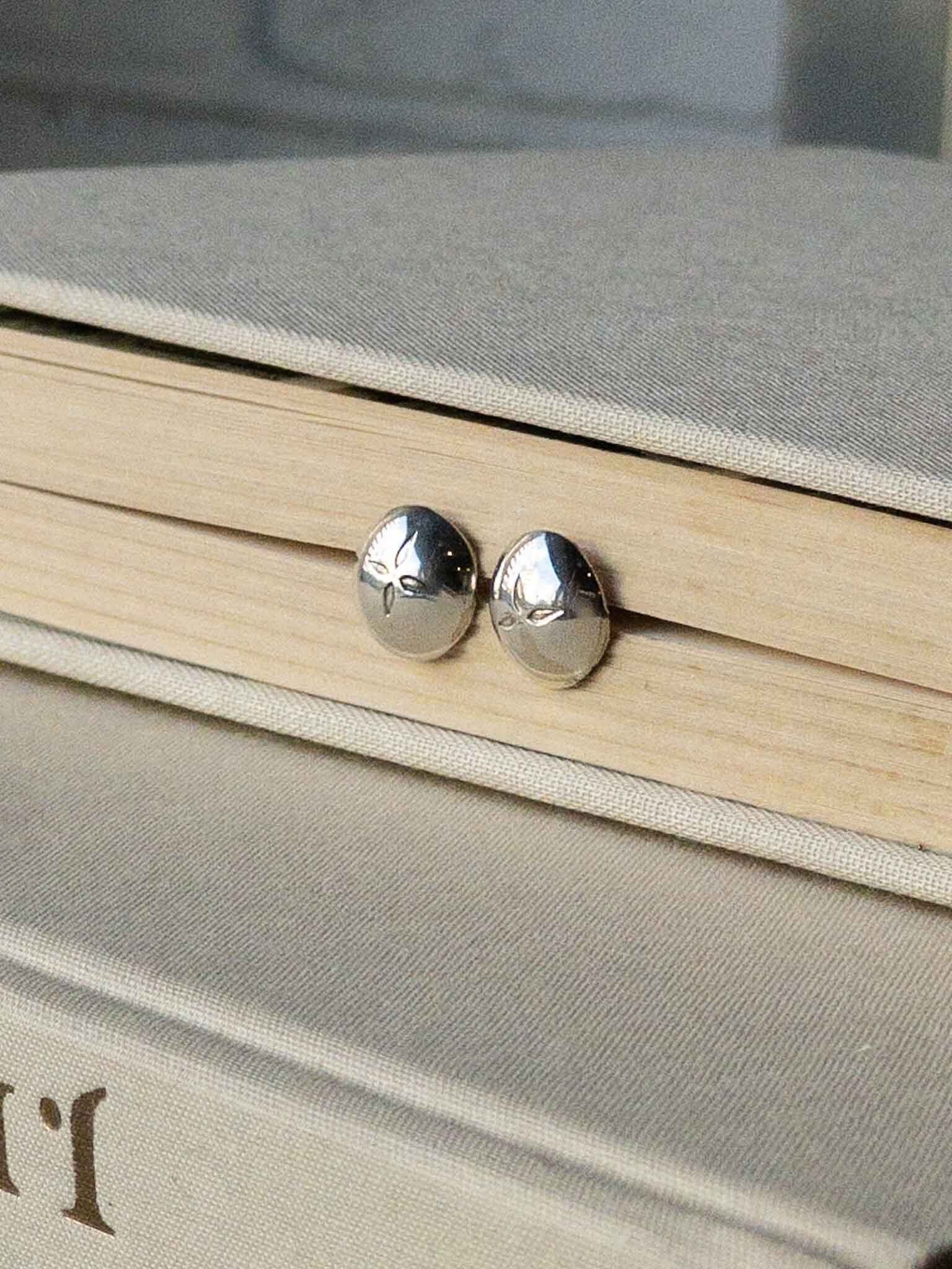 ナバホ族のシルバーワークによるコンチョ型のピアス。
